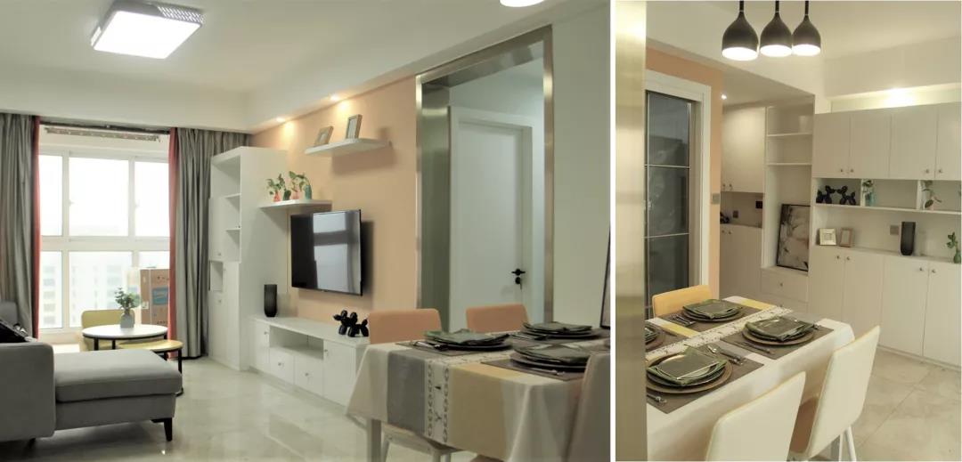 在戶型上,由于是剛需,布局方面并未做過多改動,主要是新增了儲物系統(tǒng),做了衣柜、衛(wèi)生間臺盆、酒柜和飄窗柜,使居室實(shí)用與美觀兼?zhèn)洹?/span>