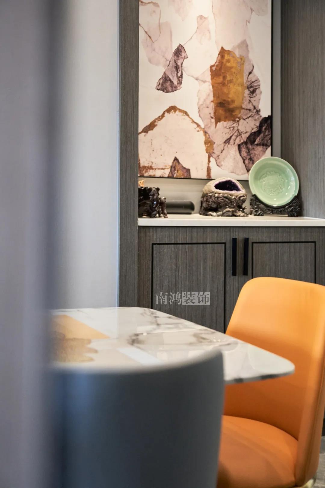 本案的主材有大理石,木飾面,金屬,絨布,皮革等,整體大氣美觀,黑白灰中點(diǎn)綴有寶藍(lán)、愛(ài)馬仕橙等個(gè)性色彩,質(zhì)感細(xì)節(jié)融匯于整個(gè)空間。