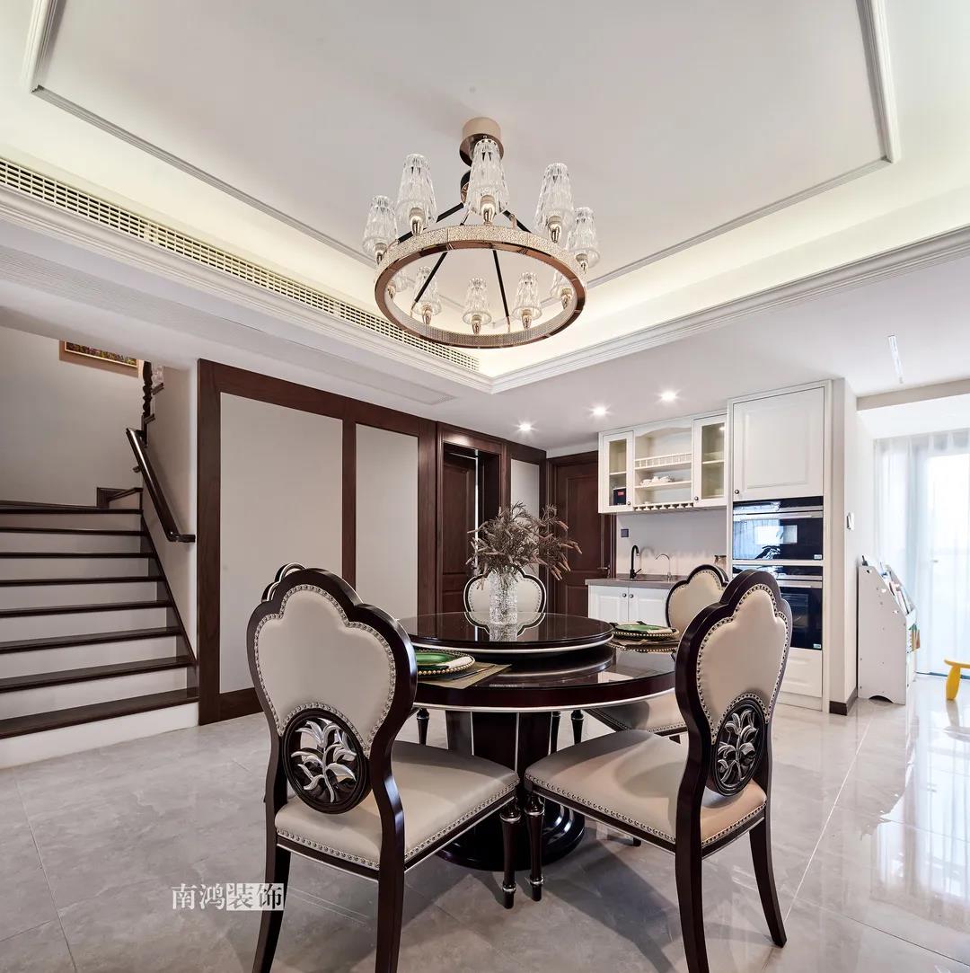 全屋雜糅了新古典、美式、中式、現代等風格的軟裝陳設,不同的空間有著不同的空間表情,想必每日住著看著都能感受到不一樣的趣味~ 01. 玄關 ENTRANCE 正對入戶口的玄關走道,盡頭處用矮柜輔以金框風景畫和擺件打造端景,實現高雅藝術表達。 02. 客廳 LIVING ROOM 轉入客廳,挑高的空間氣勢十足。軟裝材質、色彩選擇,傳達出濃厚的歷史文化底蘊,契合業主對高檔格調的追求,同時在硬裝上簡化線條,空間更加明晰可觀。 為了滿足大家庭的活動需求,設計師將原有的客餐格局重新規劃,一層客廳在最大范圍內打開,讓光線與氣韻流通,形成一個視野開闊、采光良好的會客休閑領域。從這里可以看到二樓孩子的學習讀書角。 5.4米的沙發背景墻自然成為整個客廳的視覺焦點,設計師選擇了護墻板的形式,木板分割出的造型有助于進一步拉伸層高,大氣高級的效果貫穿一二層空間。 客廳是家庭活動的重心,在裝飾上力求凸顯典雅莊重的特點。華貴的深色沙發靠墻安放,金屬鏤空隔斷在壁燈的照耀下泛起光澤,光滑的茶幾表面折射著溫度,優雅利落的奢華感,從種種細節間流露出來。 03. 餐廳 DINING ROOM 家里人口較多,基于實際需求考慮,使用圓桌是最合理的選擇。開放式操作臺兼做餐邊柜,中西結合的餐飲習慣也在這里得到了充分的體現。 04. 廚房 KITCHEN 廚房選擇了傳統的封閉式U型格局。U型廚房可以利用三面墻壁做出充足的儲物空間,動線也很流暢,而且這種封閉式的設計,最大程度地避免了外部用餐空間被油煙侵擾的問題。 05. 樓梯 STAIRS 木白配色的樓梯低調地串聯起上下層空間,原木質感給予家以寧靜,墻上一幅山水畫占據住了視覺焦點。 06. 臥室 BEDROOM 主臥面積寬敞,功能全面,衛生間衣帽間休閑區一應俱全。 睡眠區風格莊重,儀式感足,皮革硬包背景搭配華貴家具,細節處倍感精致。 主臥的休閑區,天氣好的時候,柔和的光線透過窗子灑進陽臺,優雅的主人坐在舒適的躺椅上靜靜品茶、看書,理想中的歲月靜好似乎照進了現實。 女兒房,顏色飽和度都很低,一種純粹的設計和生活方式就這樣被喚醒。 二樓兒童房。兒童房是孩子對色彩、形狀產生最初認知的地方,所以在設計上不僅要注重實用性,更要注重趣味性。童趣主題墻面、云朵狀的床頭、可愛的小掛衣桿,能讓小朋友在這里充分探索未知、創造快樂! 07. 露臺 TERRACE 露臺存在的意義,大概就是:清晨的時候泡上一杯茶,等待陽光喚醒頭腦;傍晚的時候,可以在這里享受晚風、星月,體驗都市生活中難得的一刻放松。再多養幾盆花花草草,讓美好盡情綻放~ 08. 衛生間 BATHROOM 具有現代感的主衛空間使用灰黑色主調,懸空式的長臺盆柜輕盈時尚,燈光布置層次分明,功能性與美感得到了統一。 客衛,玻璃淋浴間實現簡單的干濕分離,金色的水龍頭與臺盆柜把手、落腳更顯精致。 平面戶型圖 -- ·項目信息· 項目名稱:金都華庭 建筑類型:復式 設計風格:混搭 項目地點:中國·杭州 項目面積:230㎡ 項目服務:設計·施工·硬裝·軟裝 全案設計 設計單位:浙江南鴻裝飾 施工單位:浙江南鴻裝飾